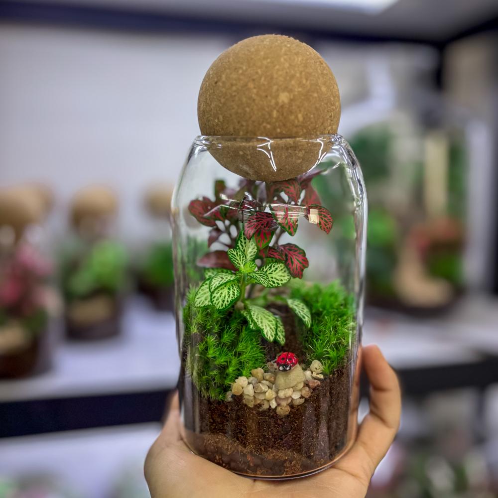 كل وعاء يحتوي على نباتات مختارة بعناية تعيش داخل بيئة زجاجية مغلقة تحافظ على رطوبتها وجمالها لفترة طويلة ، مما يجعلها خيارًا عمليًا وفاخرًا في نفس الوقت.