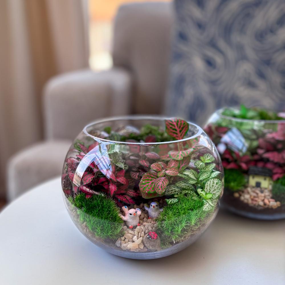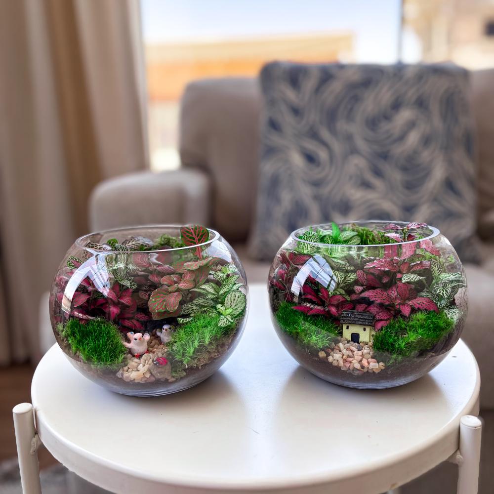 وعاءان زجاجيان دائريان بتصميم أنيق يشبه أحواض الطبيعة المصغّرة